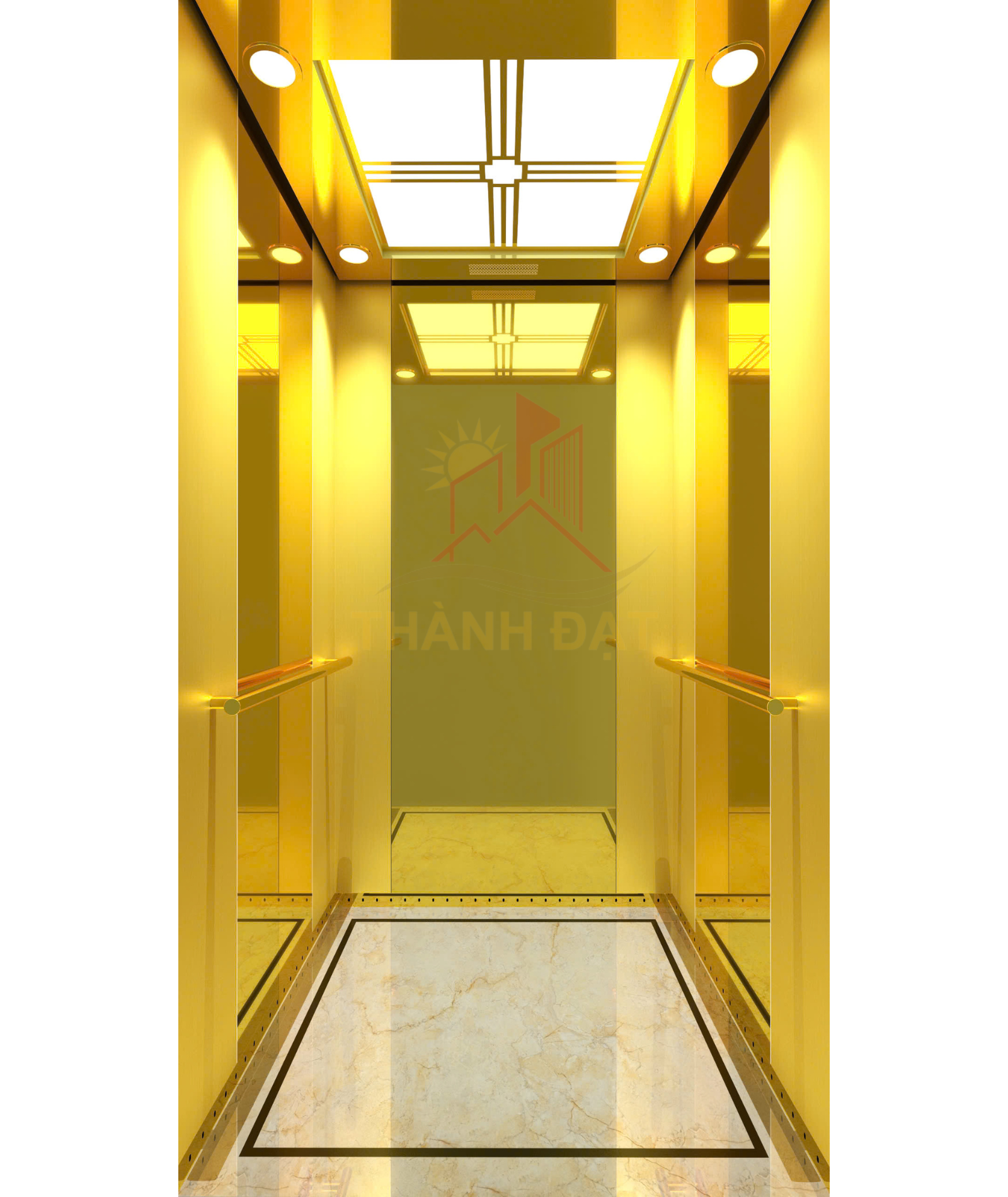 Hai tấm vách hồi bên trái và phải: Tấm inox gương vàng giữa xen tấm Inox sọc vàng 2 bên, Inox SUS – 304/ 1.2mm