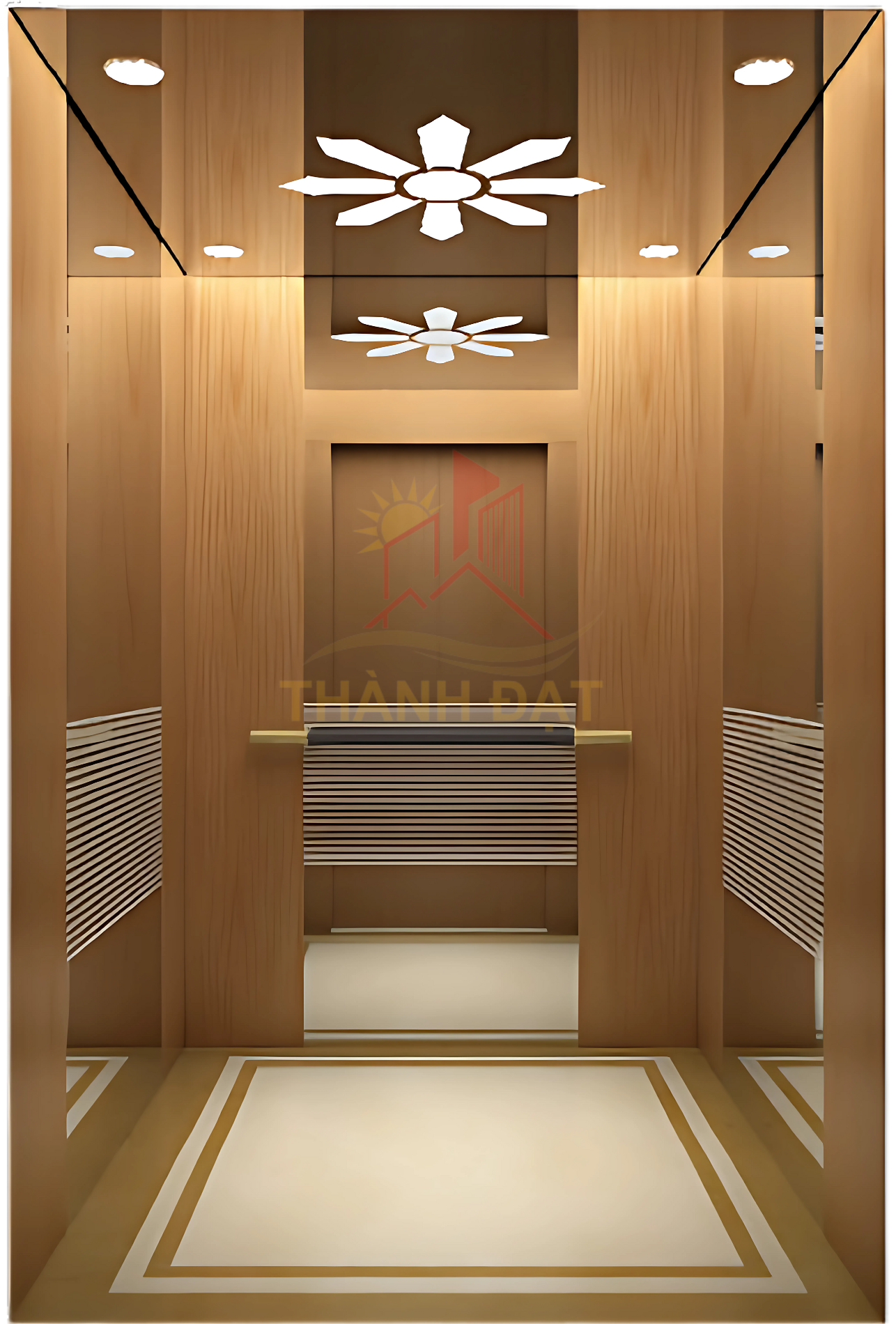 Trần Cabin: Vật liệu Inox phủ laminate vân gỗ có đèn chiếu sáng gián tiếp qua trần giả ( mẫu tùy chọn )